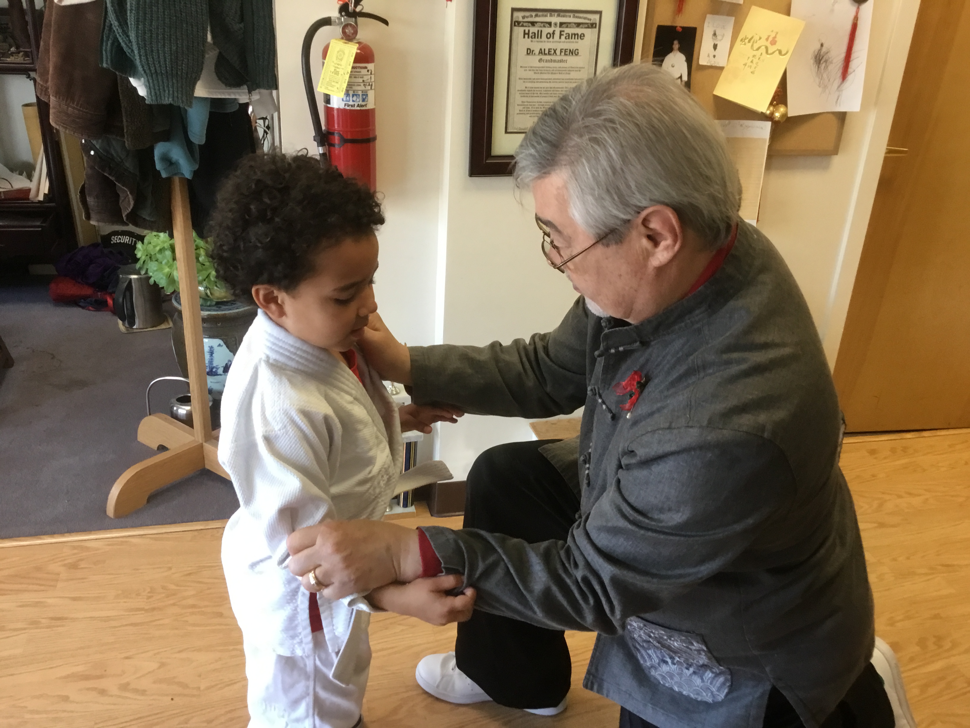 Tai Ji Quan (also spelled Tai Chi Chuan) is a martial art which emphasizes correct body postures and natural movements to improve physical health and increase energy. Tai ji is so versatile that people of all ages will find it useful, from old to young. The practice of tai ji includes but is not limited to solo or group form practice, basic posture and movement practice, to partner exercises such as push hands and sparring. The students are taught to recognize and gather and use their qi to do these forms. Classes are available in the popular Yang style, both 24 and 42, which concentrates on relaxation and slow movements which flow from one to the other. We also teach the Chen style of tai ji, which is done somewhat faster than Yang style and uses coiling movements to gather and give out explosive energy. Dr. Feng also offers Advanced Classes in tai ji sword, broad sword, ba gua, and tai ji spear.